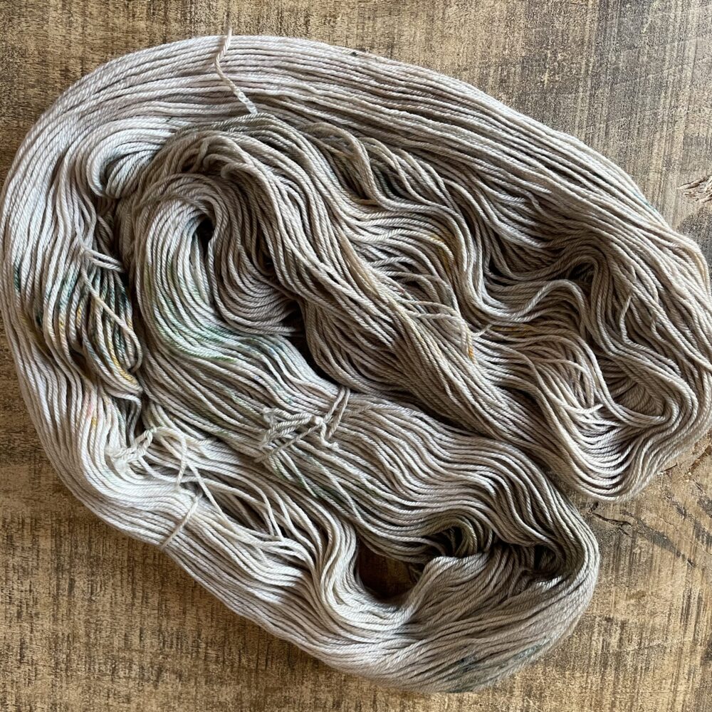 手染めのため、同じロットでも微妙な色の違いが生じることがあります。複数のカセを使用する際は、2つのカセを交互に編むことで色の差異を馴染ませることができます。 -