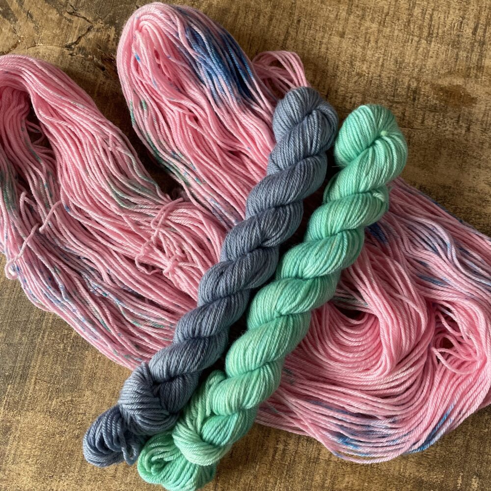 手染めのため、同じロットでも微妙な色の違いが生じることがあります。複数のカセを使用する際は、2つのカセを交互に編むことで色の差異を馴染ませることができます。 -
