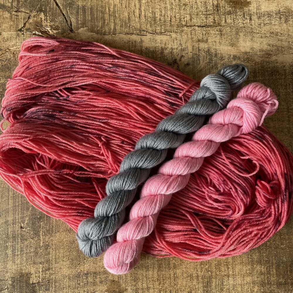 手染めのため、同じロットでも微妙な色の違いが生じることがあります。複数のカセを使用する際は、2つのカセを交互に編むことで色の差異を馴染ませることができます。 -